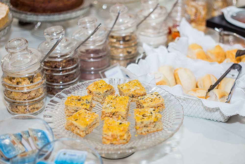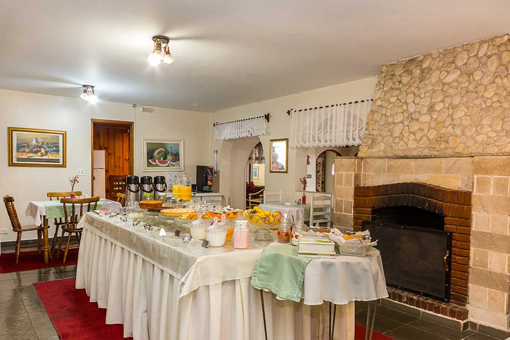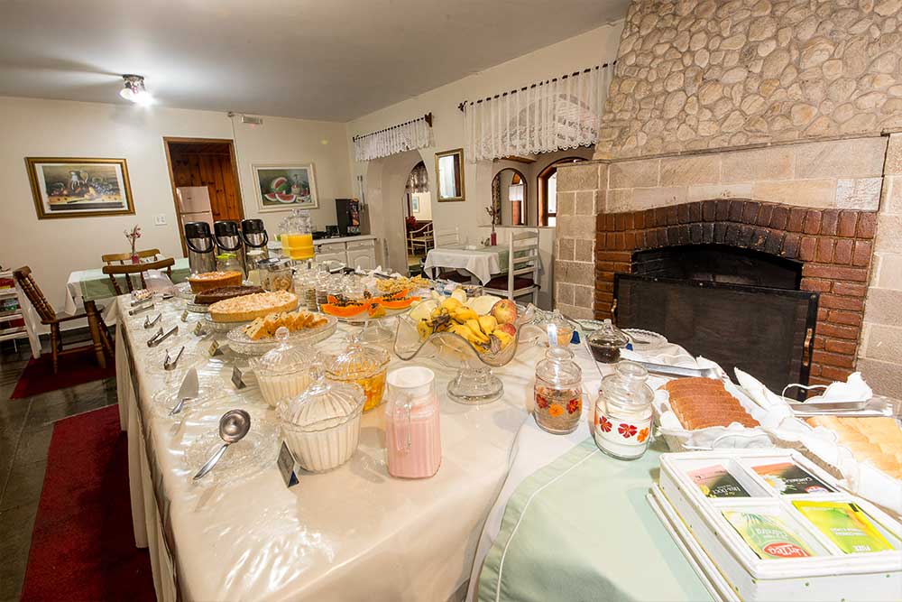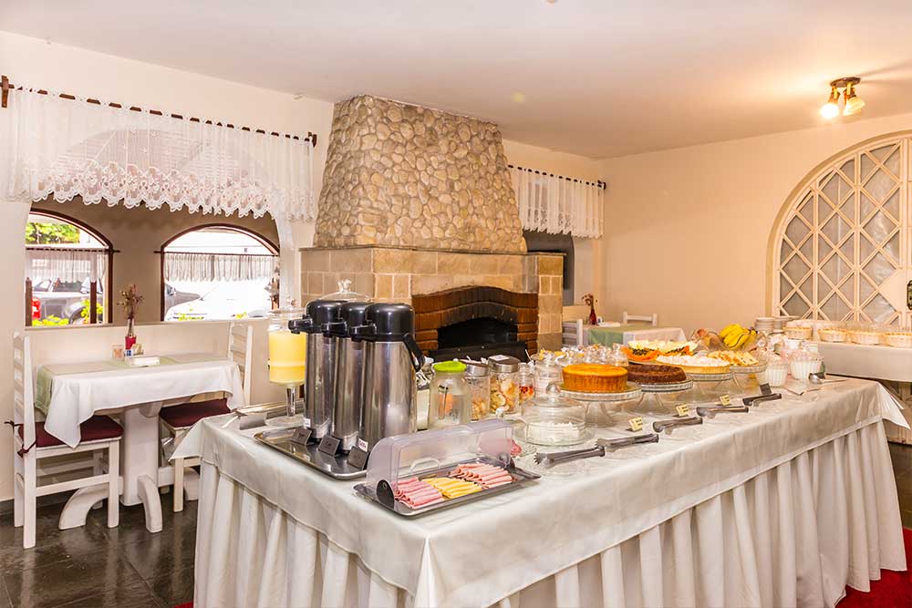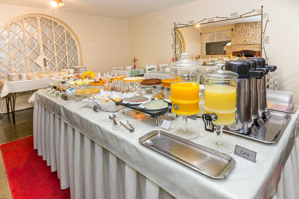 Bolos, tortas, pães, sucos e uma infinindade de delícias preparadas com muito carinho no prório hotel. Café da manhã servido das 8hs até as 11:00hs